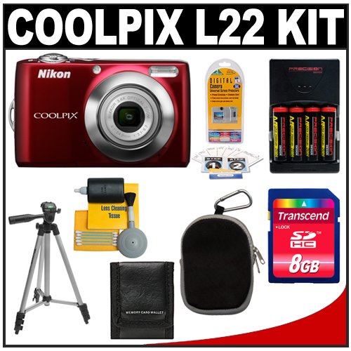 Cheap "Nikon Coolpix L22 12.0 Megapixel Digital Camera with 3.6x Optical Zoom (Red) with + 8GB Card + (4) Batteries + Tripod + Case + Accessory Kit" Discount Review Shop