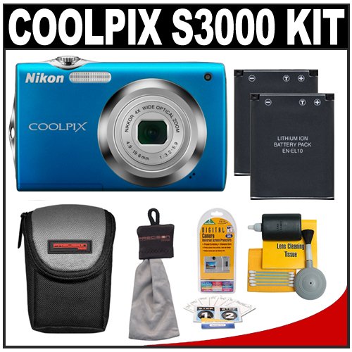Cheap "Nikon Coolpix S3000 12.0 Megapixel Digital Camera with 4x Optical Zoom (Blue) with + (2) EN-EL10 Batteries + Case + Accessory Kit" Discount Review Shop