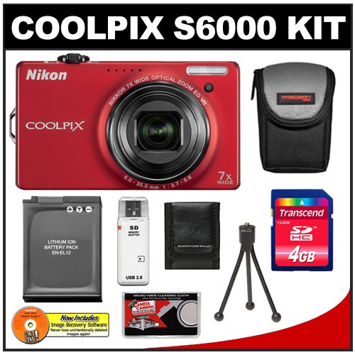 Kit includes:♦ 1) Nikon Coolpix S6000 Digital Camera 14 MP Digital Camera with 7x Optical Zoom (Red)