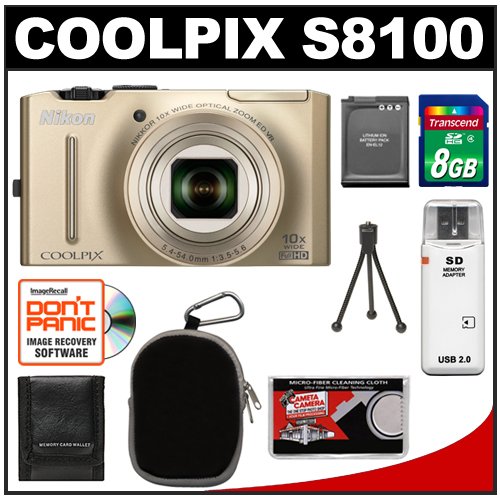 "Nikon Coolpix S8100 12.1 MP Digital Camera (Gold) with 8GB Card + Battery + Case + Accessory Kit" Overview