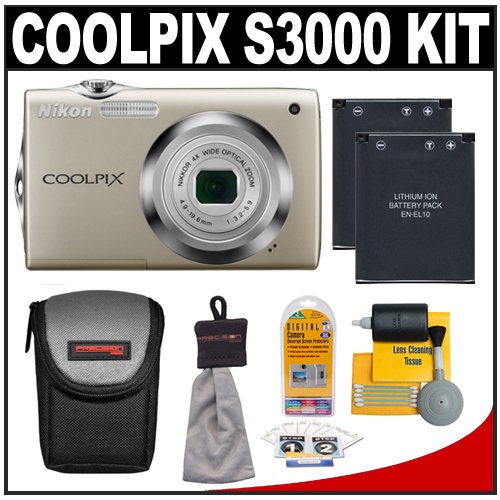 Cheap "Nikon Coolpix S3000 12.0 Megapixel Digital Camera with 4x Optical Zoom (Champagne Silver) with + (2) EN-EL10 Batteries + Case + Accessory Kit" Discount Review Shop