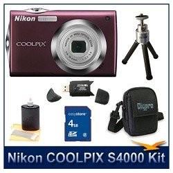 Cheap Nikon Coolpix S4000 Digital Camera (Plum), 12 Megapixels, 4x Wide-Angle Optical Zoom (27-108mm), 3" High Resolution Touch Panel, Digpro Deluxe Carrying Case, Lens Cleaner, 4 GB Memory Card, Card Reader, and Tripod Discount Review Shop