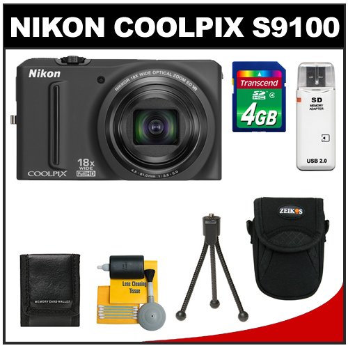 Cheap Nikon Coolpix S9100 12.1 MP Digital Camera (Black) with 4GB Card + Case + Cleaning & Accessory Kit Discount Review Shop
